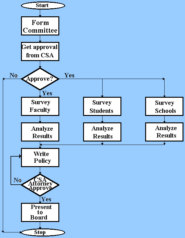 - Milestone 2. (5 weeks from date committee formed) Policy from other schools collected.